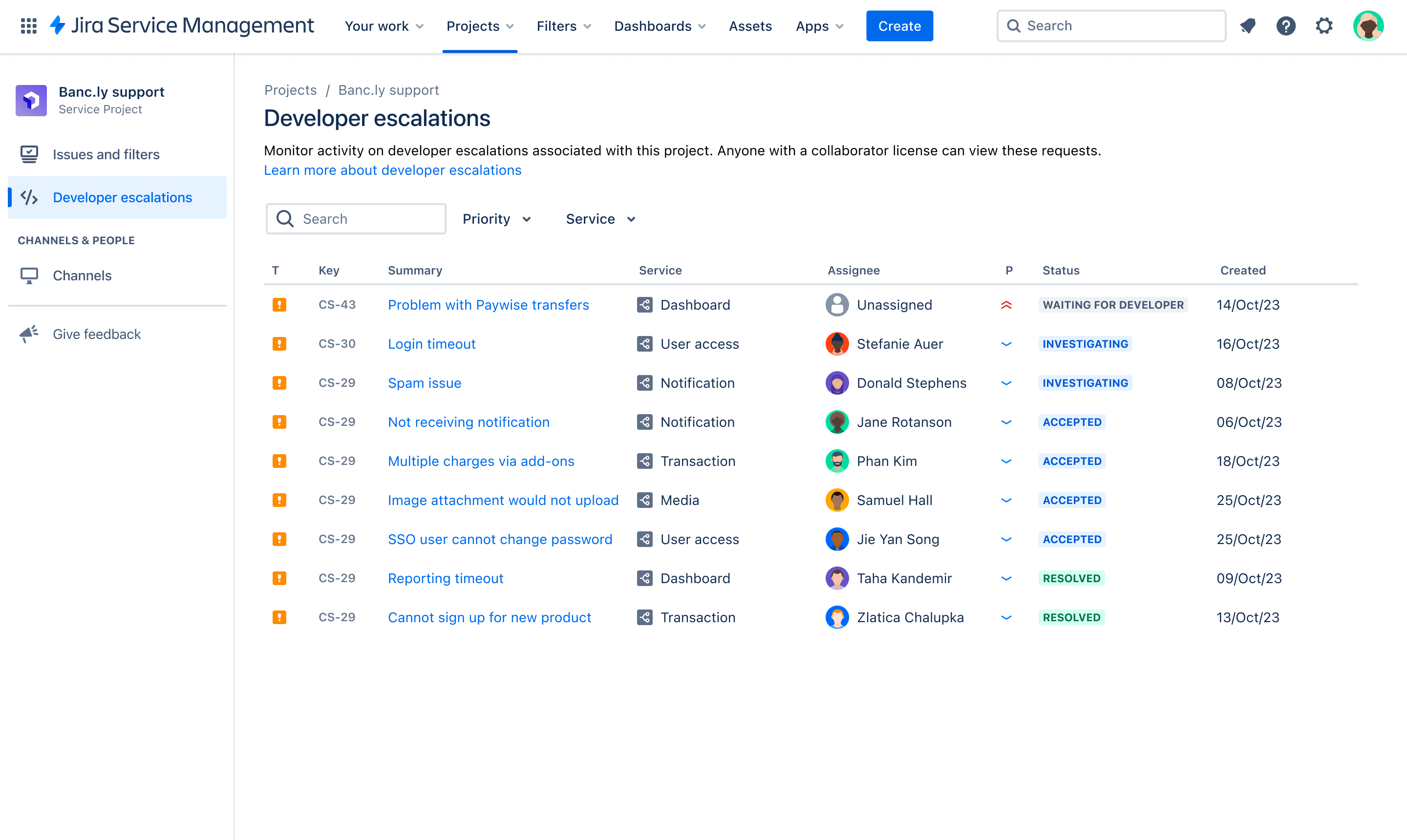 Developer escalations