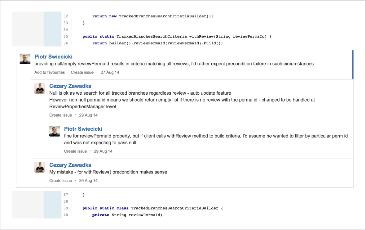 Access all code review details, down to the history of a specific code review and have traceability with issues and source code if you are utilizing Jira Software and Fisheye.