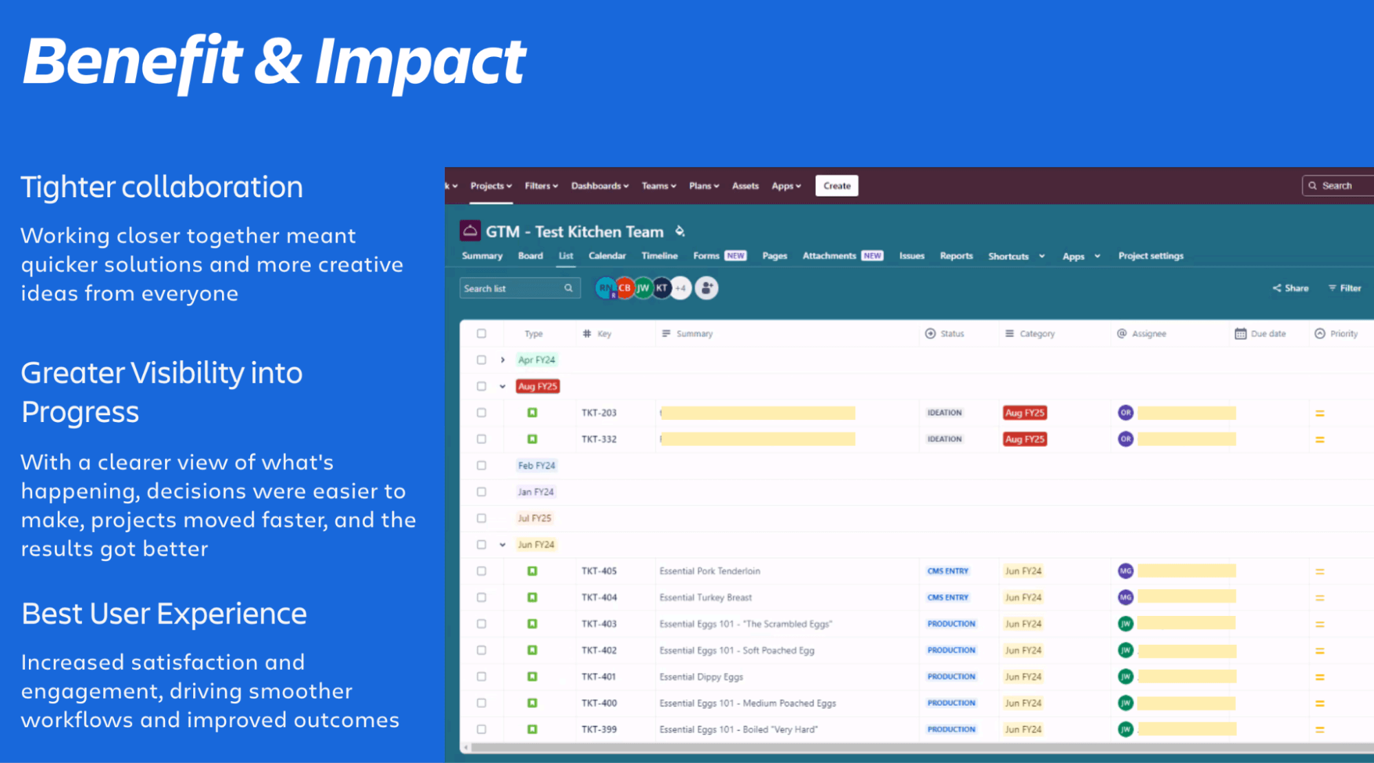 By having “freedom within a framework” and a unified Atlassian ecosystem, the Test Kitchen, product teams, and groups across the company are seeing improvements in cross-functional collaboration, visibility, and user satisfaction.